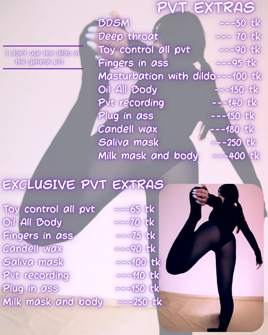Ahegao, Szopás, Jelmez, Tevepata, Kutyapóz, Jóga, Fenekelés, Ujjazás, Szerepjáték, Szájpecek, Félmeztelen, Villantás, Olajozás, Fűző, Sztriptíz, Lábfétis, Magassarkú, Twerk, Felcsúszott szoknya, Erotikus tánc, Mellbimbó izgatók, Bőr, Tágítás, Masszás, Kézimunka, Farok értékelés, Cici baszós, Mély torok, Dildó vagy vibrátor, Orgazmus, Hardcore, Szexjátékok, Maszturbálás, Lábmunka